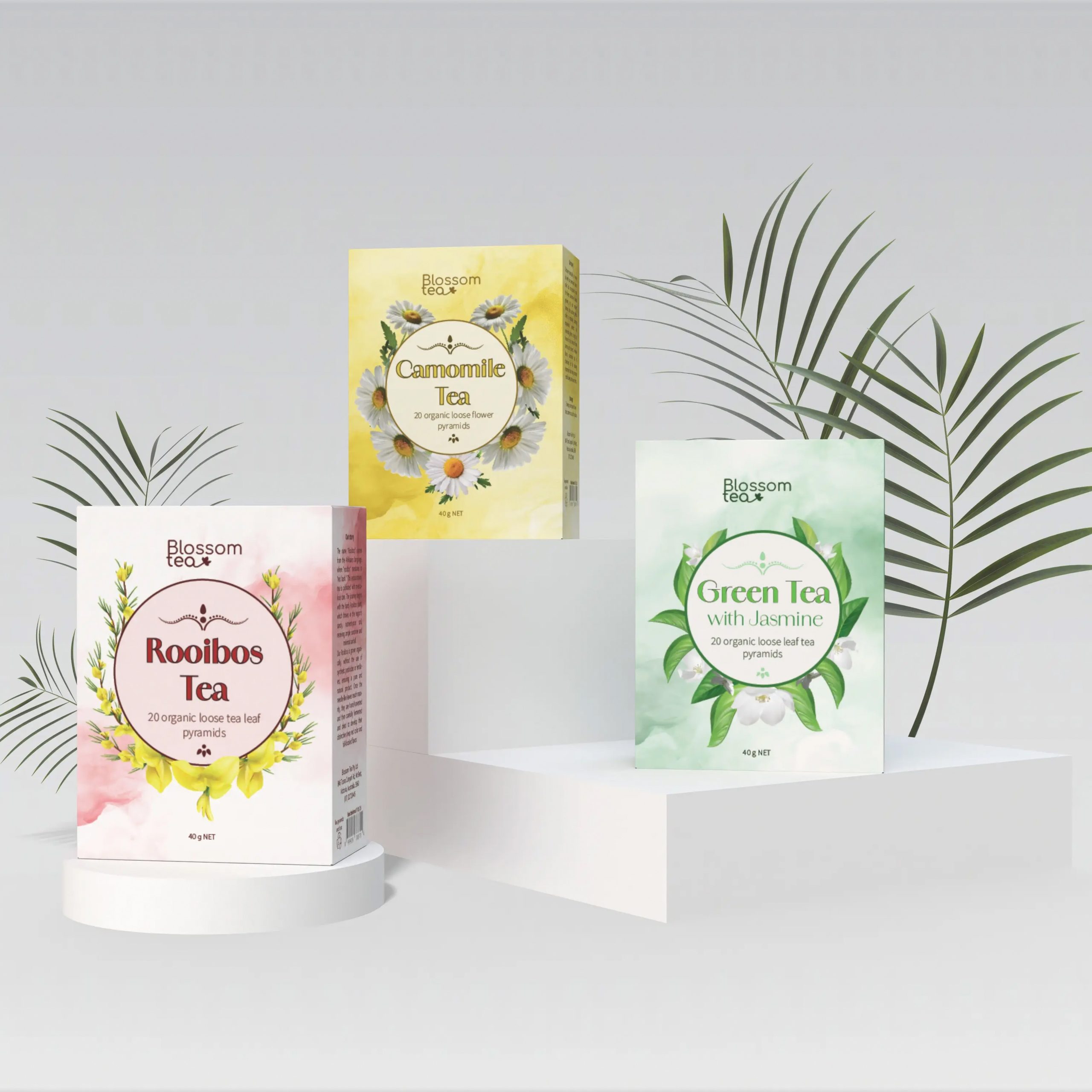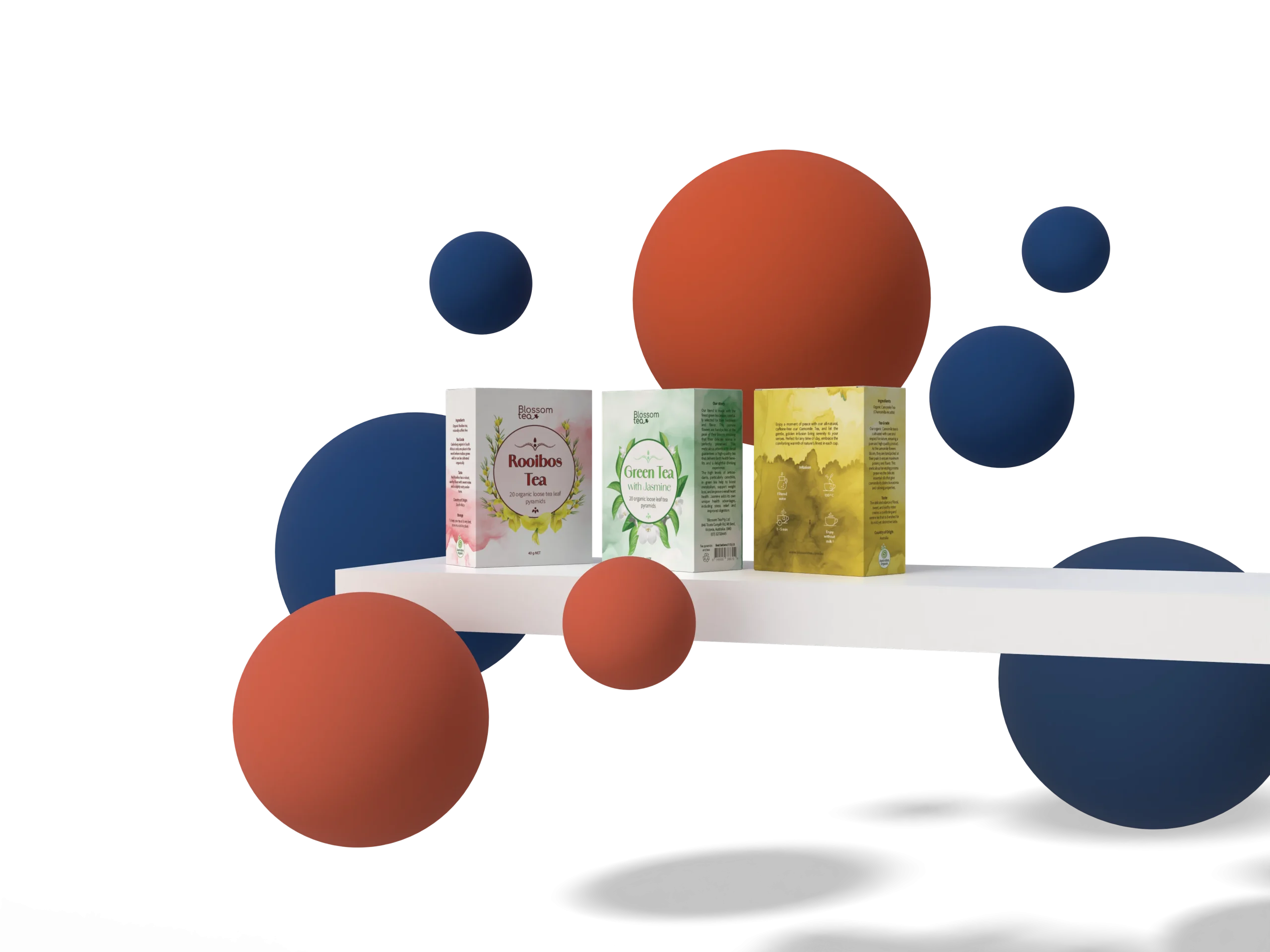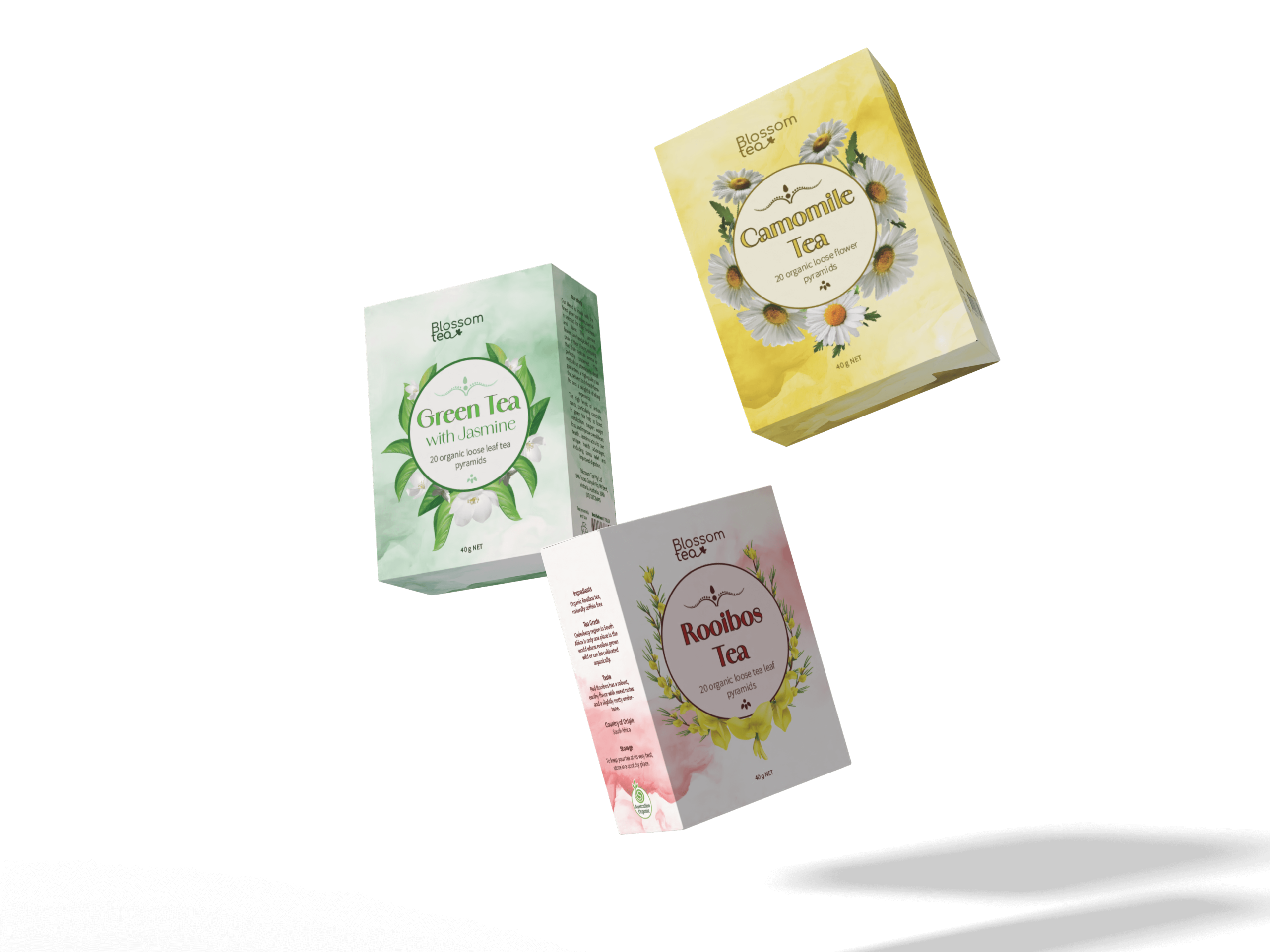 Green, Camomile and Rooibos tea packaging design