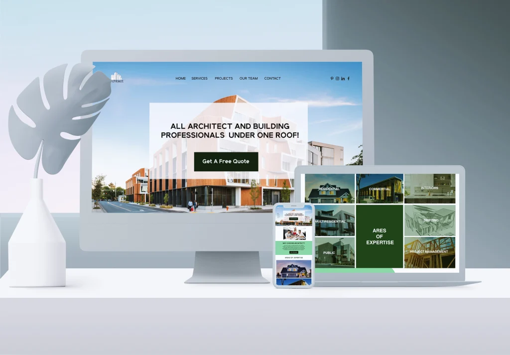 The design reflects the core values of precision, creativity, and professionalism — essential attributes of any reputable architecture firm.